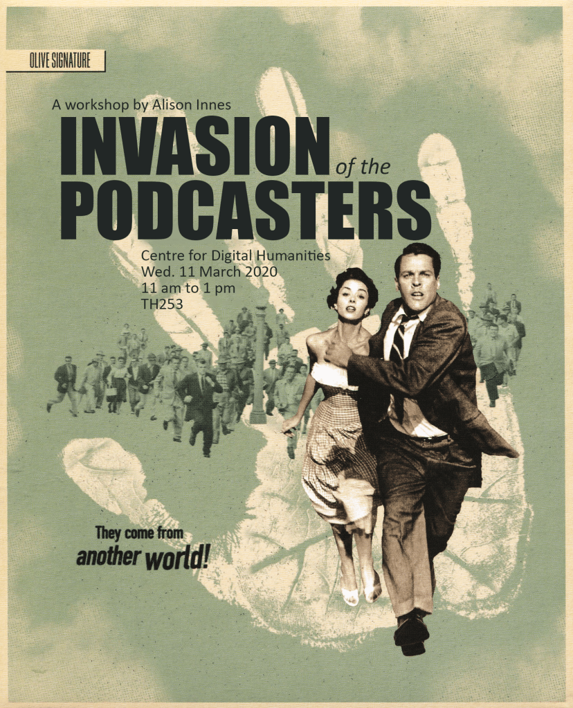 Join Alison Innes, Social Media Coordinator for the Faculty of Humanities and independent podcaster for a “Podcasting 101” workshop. Alison will share her experience co-creating MythTake and talk about the challenges and opportunities of independent podcasting. Learn more about the podcasting landscape and get a sneak peek behind the scenes of her latest podcasting project for the Faculty of Humanities.